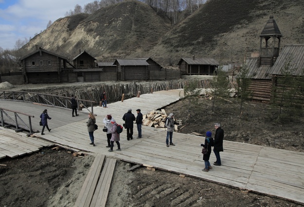 Отметим, что территория старой нефтебазы – место будущей интерактивной площадки Тобольского историко-архитектурного музея-заповедника. Киногруппа получила разрешение хозяйничать здесь в свое удовольствие, но после завершения работ обязана оставить постройки учреждению культуры. Земля еще вязкая – не просохла, поэтому перебираемся, как разведчики по пересеченной местности: прыгаем с доски на доску, путаемся в кучах слежавшейся соломы. Никакой растительности и в помине – деревья и кустарники высадят позже. Терема стоят, но пока голые внутри – в майские праздники их отшлифуют, заставят утварью, а вместо современных стекол натянут бычьи пузыри, задекорируют слюдой. Привезут и три кораб-ля – пока решают, отправить их из Тюмени по воде или тралом. Изначально группа взяла обязательство показать XVIII век в Сибири натуралистично, поэтому за недопущение исторических ошибок отвечает множество умов.