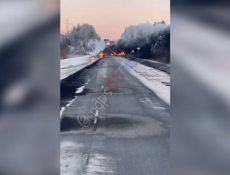На трассе Тюмень – Ханты-Мансийск перекрыли движение из-за возгорания двух грузовиков