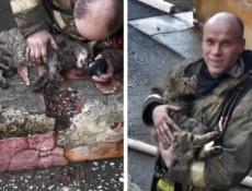 Тюменские пожарные откачали кота, спасенного из горящего дома – видео