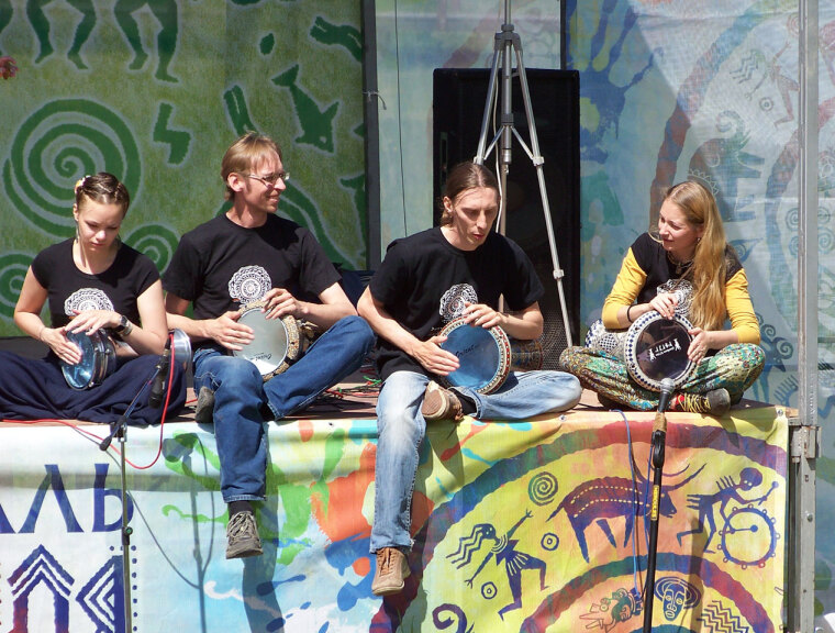 В центральной части «Кулига-парка» все это время проходила ярмарка. Желающие могли приобрести этническую одежду – шаровары, длиннополые рубашки, украшения ручной работы. Также продавались экологически чистые продукты: мед, кедровые орехи, жмых, выжимки из различных семян. Художники разрисовывали гостей фестиваля традиционными индийскими рисунками из хны, которые называются мехенди.