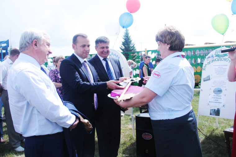 По старой русской традиции гостей принято встречать хлебом-солью. В воротах стадиона райцентра, где проходили основные торжества, пышный румяный каравай отведали заместитель губернатора Тюменской области Вадим Шумков и глава администрации Сладковского района Александр Иванов.