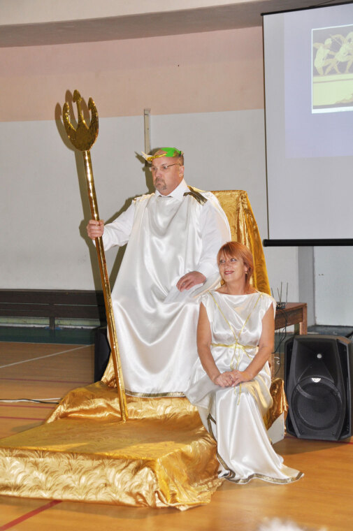 Тренеров спорткомплекса в костюмах древнегреческих богов было не узнать, будто и впрямь спустились с Олимпа. Весьма колоритен был Зевс, хороши собой Аполлон и Афродита. Согласно древнегреческой мифологии именно боги, восседая на Олимпе, устав от людских войн, кровопролитий, решили устроить спортивные состязания, чтобы величие людей утверждалось не мечом, а силой и ловкостью.