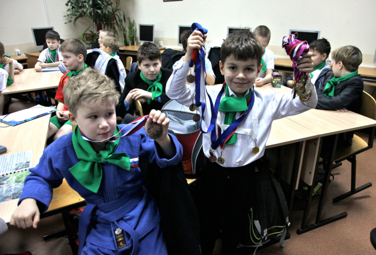 Пока школьники среднего и старшего звена проводили научные изыскания, первоклашки спорили за право считаться самыми быстрыми, ловкими и сильными на спортивной площадке. Ученики 1 «б» класса, доказавшие в «Веселых стартах» неоспоримое лидерство, выбрали в качестве приза дополнительный день к каникулам. Чуть уступившие им воспитанники 1 «а» утешились огромным пирогом. Впрочем, без сладкого приза не остались и те, кто замкнул тройку сильнейших.