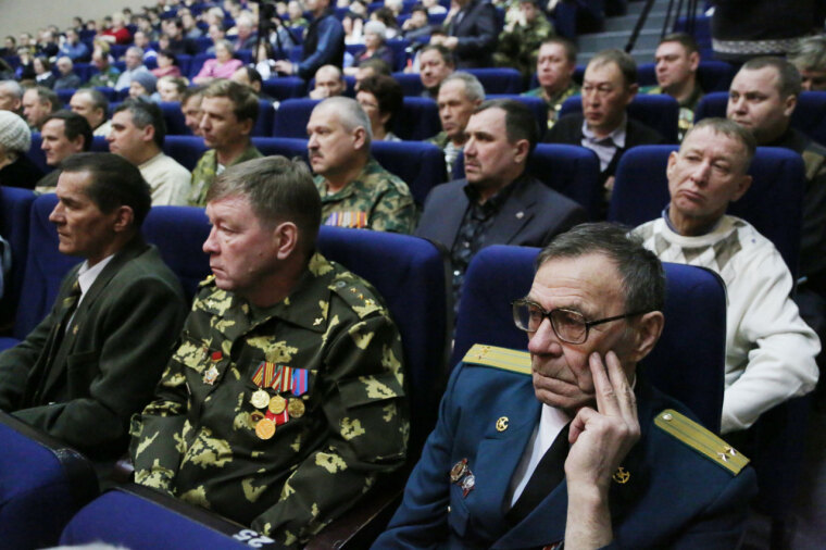 В зрительном зале не было свободных мест. Кроме ветеранов пограничных войск, многие из которых пришли с женами и детьми, в торжественном вечере приняли участие представители исполнительной и законодательной власти, общественных организаций, СМИ, учащиеся президентского училища, кадеты и ребята из военно-патриотических центров. Присутствовали и почетные гости: заслуженный пограничник РФ, участник боевых действий в Афганистане генерал-полковник Мансур Валиев, начальник регионального управления ФСБ РФ по Тюменской области генерал-майор Вадим Пятилетов, начальник пограничного управления по Курганской и Тюменской областям генерал-майор Роман Ксенз, матери, вдовы и родственники пограничников, которые погибли, выполняя долг.