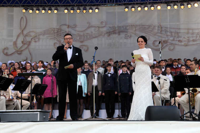 Открыл торжество хор Тобольской духовной семинарии. В «Хвалебной песни Кириллу и Мефодию» и «Марше сибирских стрелков» солировал регент, священник Игорь Хмелев. Далее эстафету принял собственно сам сводный хор – это мальчишки и девчонки, юноши и девушки со всего региона, как из статусных учебных заведений и коллективов, так и из небольших музыкальных школ, что в сибирской глубинке. Компанию им составили второклашки из тюменской школы № 88 – победители недавно финишировавшего конкурса «Самый поющий класс». Громче всех их ободряли родители, увешанные воздушными шариками и флажками.