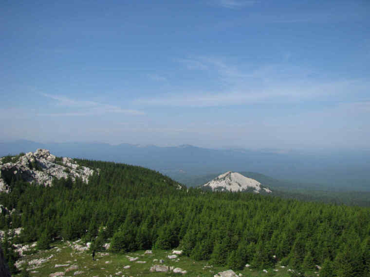 Ситуация накалилась, когда мы наконец ступили в разнотравье и перестали спотыкаться на камни. Сюда уже вполне мог проехать автомобиль и забрать всех уставших. Проводник до последнего старался этот факт не раскрывать и терпеливо вел нас вперед -- к памятнику Столбы, до которого было без малого три километра. На середине пути наша группа разделилась на тех, у кого силы еще были, и тех, у кого их не осталось. Вскоре нас, впереди идущих, догнал помощник проводника и сообщил, что два человек из второй части группы требуют лимузин и категорически не могу здесь оставаться.