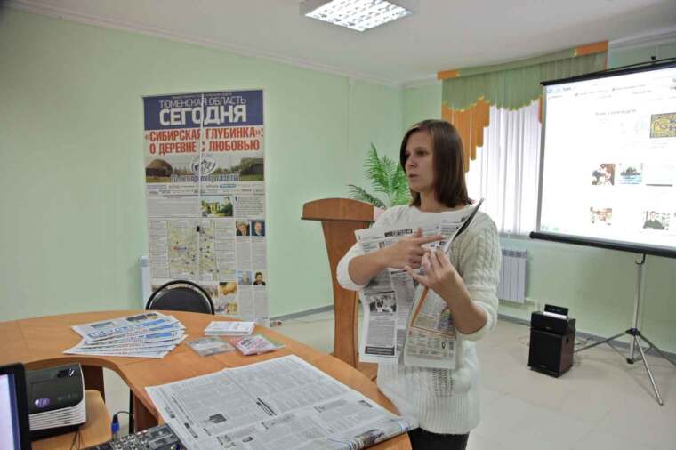 Общение с обширной аудиторией заинтересованных людей имело и сверхзадачу – презентацию только что вышедшего второго (дополненного) издания «Книги рекордов Тюменской области сегодня», а также третьего редакционного тома с названием «Диалоги с лидерами». Под твердой обложкой последнего – десятки материалов о гордости редакционного коллектива – проекте «Клуб «От первого лица». О нем, различных экспедициях мобильного коллектива редакции и кропотливой работе с многочисленными письмами читателей поведала обозреватель отдела писем Лидия Бобаченко. Видеооператор Александр Тарасов прямо с насыщенного разнообразной информацией сайта газеты продемонстрировал на экране ролик о самой многоплановой и сложной (добирались самолетами, на моторных лодках, вездеходах) экспедиции редакции – «Репортеры дорогами Заболотья».