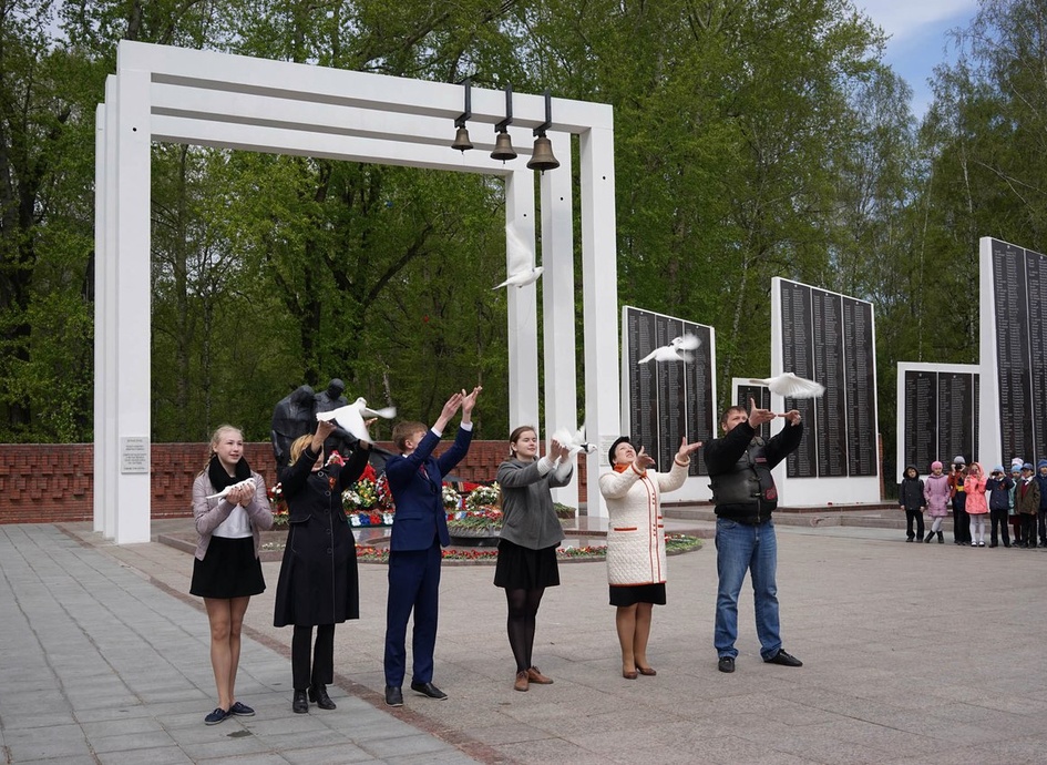 Акция "Белые журавли памяти". В 12 часов в 21 месте Тюмени – рядом со школами, детскими садами и возле Вечного огня – состоялась памятная акция «Белые журавли памяти». После минуты молчания в память о погибших во время Великой Отечественной войны воинах тюменские школьники отпустили в небо синие воздушные шары с привязанными к ним бумажными журавлями..