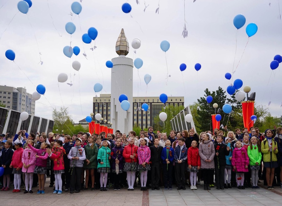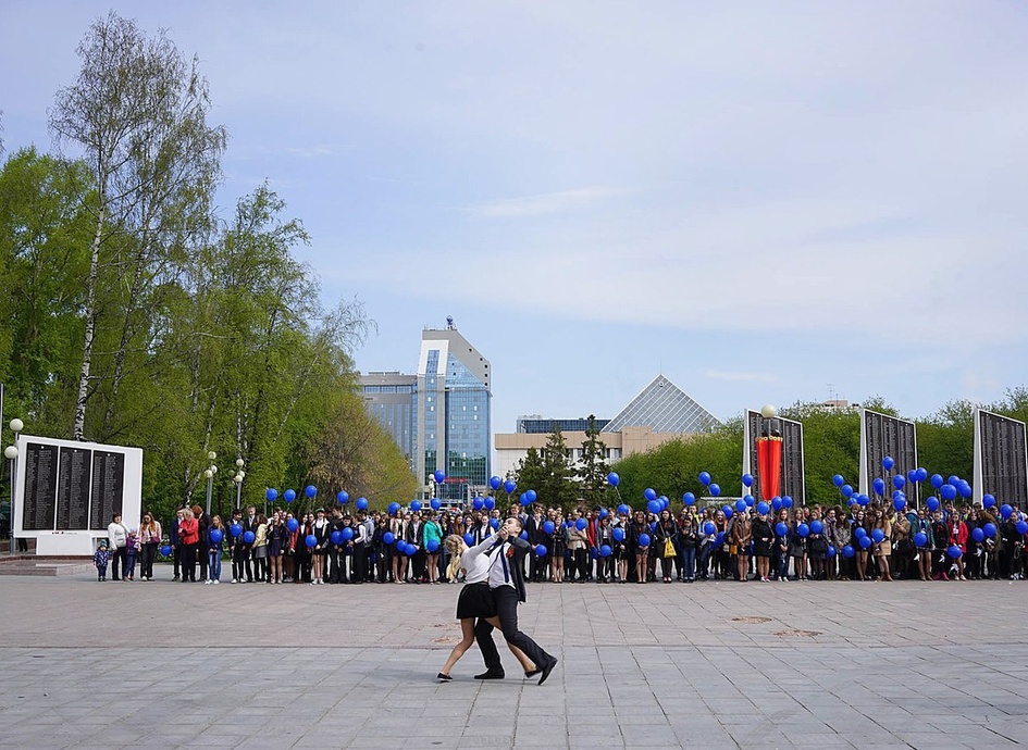 В 12 часов в 21 месте Тюмени – рядом со школами, детскими садами и возле Вечного огня – состоялась памятная акция «Белые журавли памяти». После минуты молчания в память о погибших во время Великой Отечественной войны воинах тюменские школьники отпустили в небо синие воздушные шары с привязанными к ним бумажными журавлями.