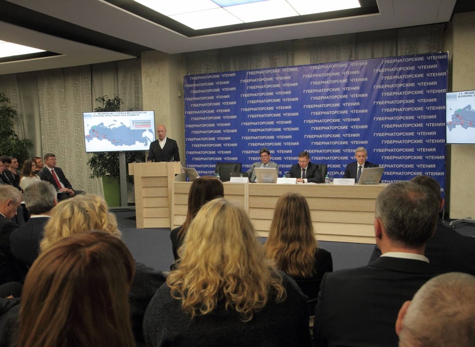Президент Союза архитекторов России, академик Российской академии архитектуры и строительных наук рассказал о современной российской политике пространственно - территориального развития. Содокладчиками стали генеральный директор ООО «ИТП Град» Анна Береговских, директор ООО «Мастерская архитектора Табанакова А.В.» Андрей Табанаков, а также исполнительный директор компании «Брусника. Тюмень» Александр Щиголь.