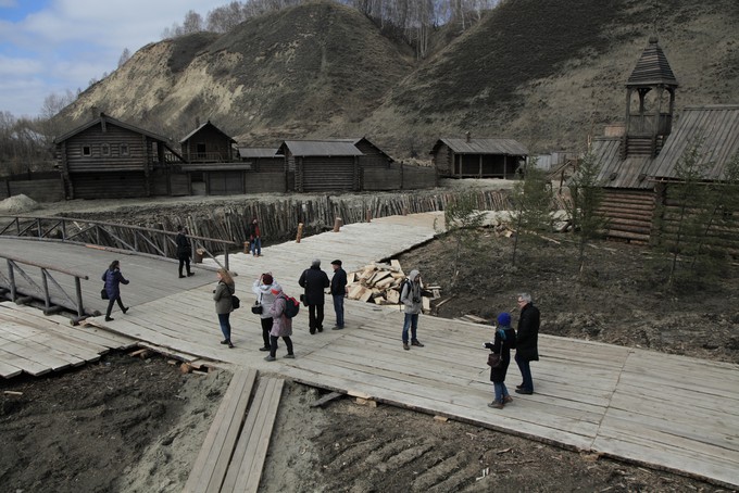 И хотя в деревню Панушкову за городом, где снимали зимние кадры, мы не попали – дорогу в весеннюю распутицу развезло и растащило, да и столичные актеры разъехались по своим делам, посмотреть все равно было на что (как раз сейчас на улице Ленина на месте старой нефтебазы достраивают посад староверов для киноленты), поговорить было с кем (продюсер Олег Урушев и режиссер Игорь Зайцев практически все время проводят в духовной столице Западной Сибири). С погодой, правда, договориться не смогли: вместо обещанного синоптиками большого плюса – плюс маленький, разбавленный пронизывающим ветром. Впрочем, вблизи Иртыша так все время – будет наука в следующий приезд!