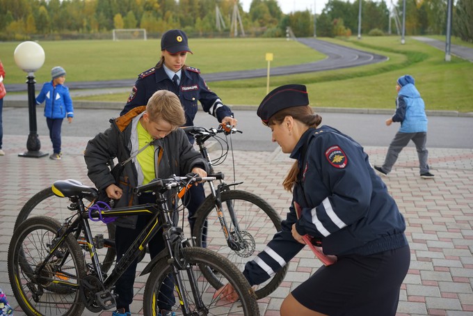 Сотрудники Государственной инспекции безопасности дорожного движения организовали на территории спорткомплекса поселка Богандинский выездной пункт станции техобслуживания для велосипедистов под названием «Засветись!».