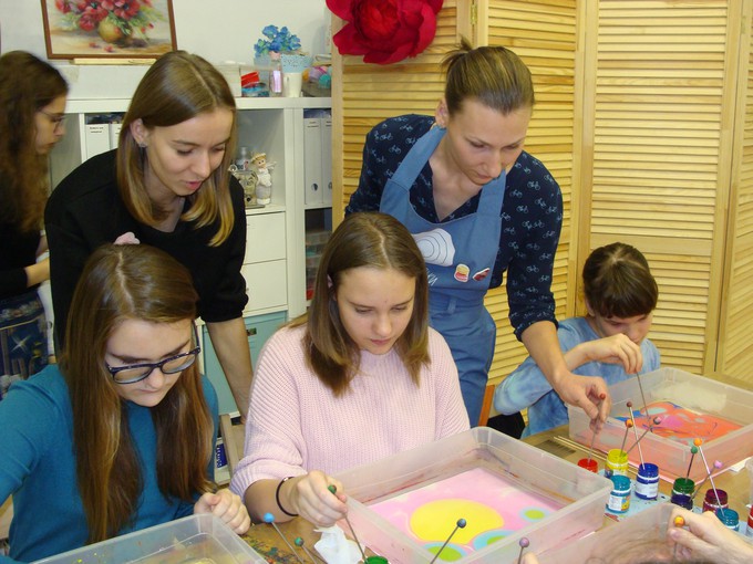 Дети и наставники встретились на мастер-классе по рисованию на воде, который провел для них один из партнеров проекта – хобби-студия «Васильки».
