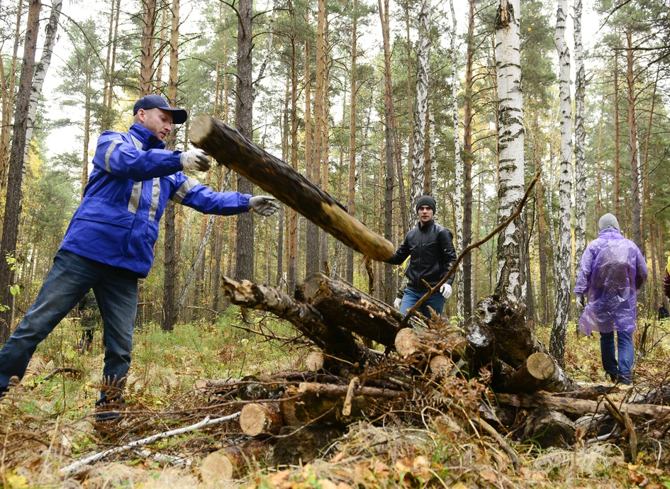 Добровольцы из тюменских организаций очистили участок леса от валежника.