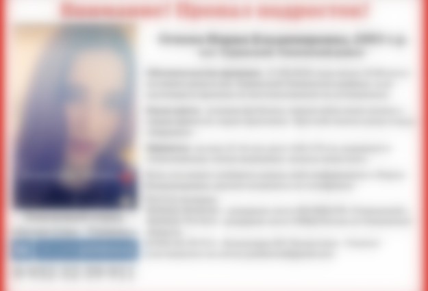 Приметы Марии: на вид 15-16 лет, рост около 170 сантиметров, худощавое телосложение, темно-вишневые волосы ниже плеч. По данным поисковиков, девушка была одета в розовую футболку, черную юбку с синим принтом длиной ниже колена, серые кроссовки. При себе у нее была сумка в виде барашка.