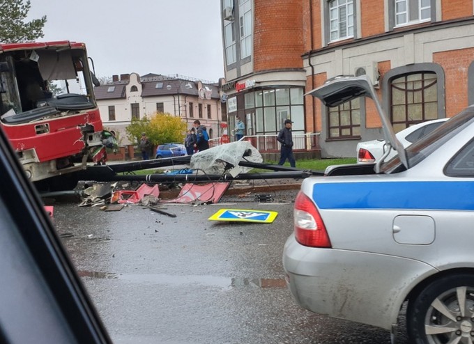 В Тобольске автобус въехал в опору освещения