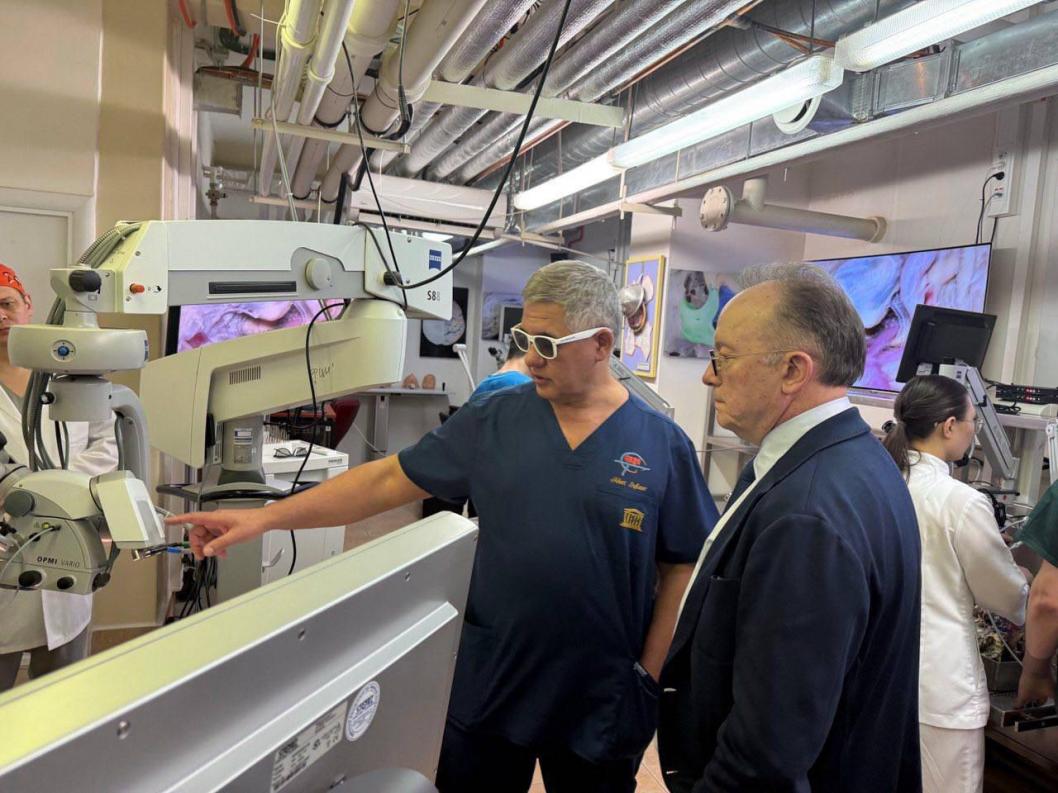 Рабочий визит они начали с экскурсии по Федеральному центру нейрохирургии, которую для них провел заслуженный врач России, профессор Альберт Суфианов. Он показал столичным коллегам передовое оборудование и новейшие научные достижения в области нейрохирургии в регионе.