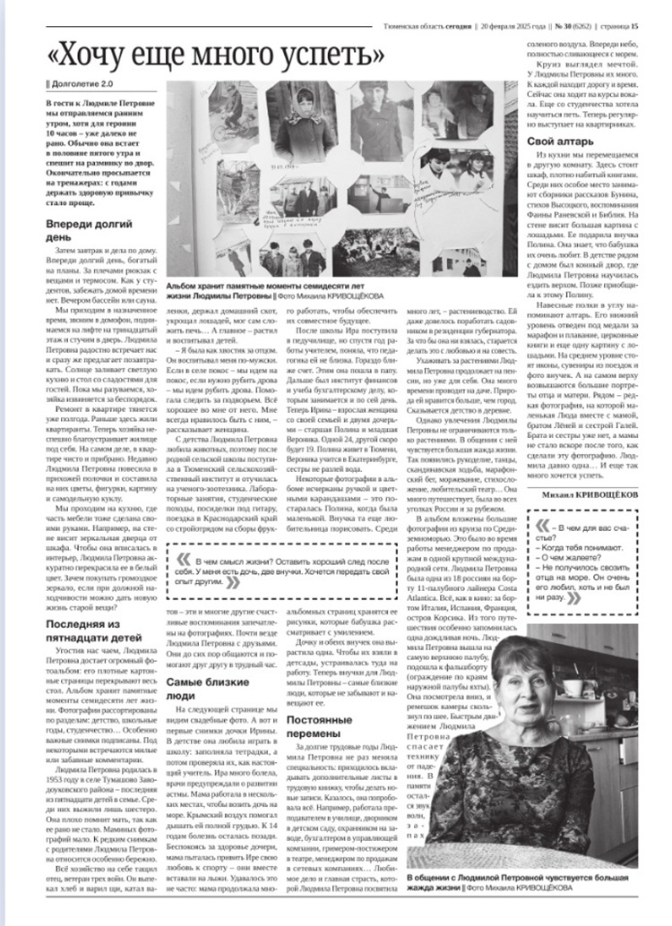 В гости к Людмиле Петровне мы отправляемся ранним утром, хотя для героини 10 часов – уже далеко не рано. Обычно она встает в половине пятого утра и спешит на разминку во двор. Окончательно просыпается на тренажерах: с годами держать здоровую привычку стало проще.