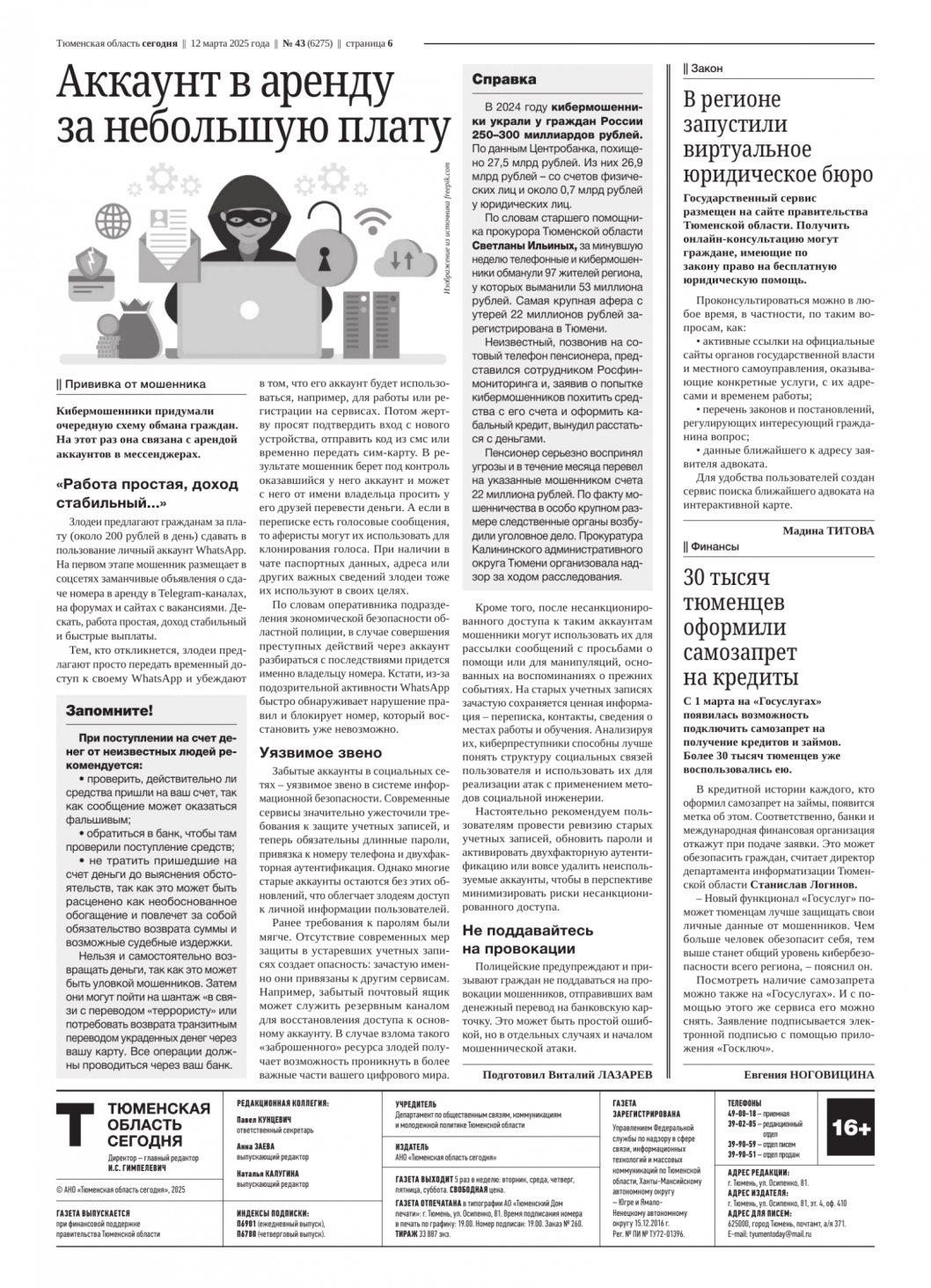 Кибермошенники придумали очередную схему обмана граждан. На этот раз она связана с арендой аккаунтов в мессенджерах.