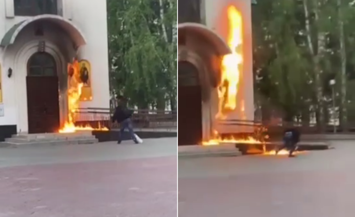 Установлено, что в тот день он бросил четыре заранее приготовленные стеклянные бутылки с легковоспламеняющейся жидкостью в проем с изображением иконы, в стену храма, а также около входной деревянной двери. В результате произошел пожар.