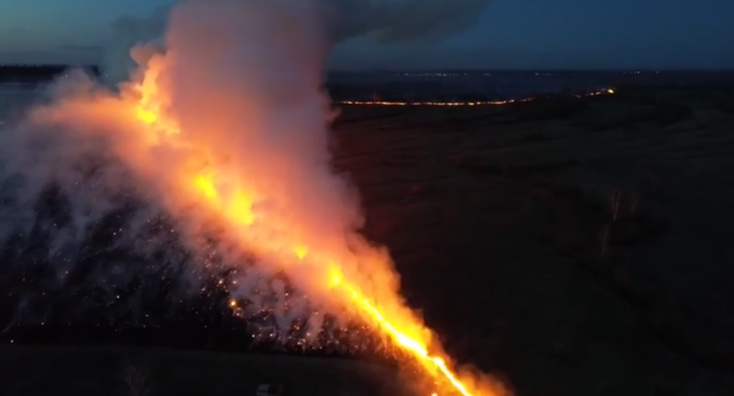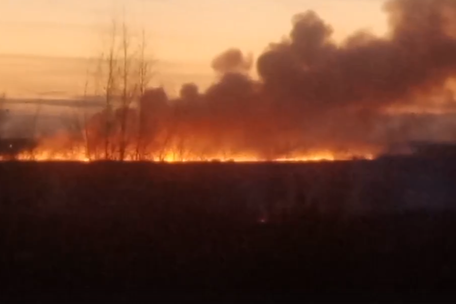 Алые всполохи озарили небо в Тюменском районе, где вечером 15 апреля произошел ландшафтный пожар.