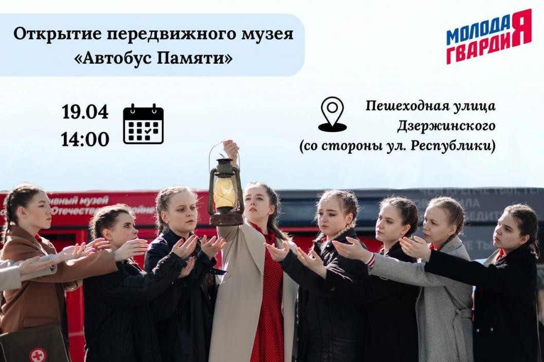 музей «Автобус Памяти» распахнет свои двери 19 апреля в 14:00 на пешеходной улице Дзержинского со стороны улицы Республики. Об этом сообщает «Молодая Гвардия».