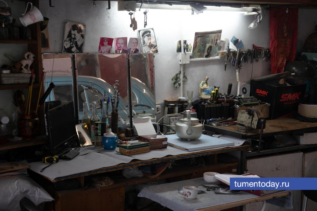 Мужчине 57 лет. Большую часть своей жизни он работает с машинами – всё началось с технического образования, полученного в юности. Сейчас его гараж больше похож на музей. Рядом с ретроавтомобилями можно увидеть и другие предметы той эпохи: плакаты, флажки, чайные сервизы и даже трюмо.