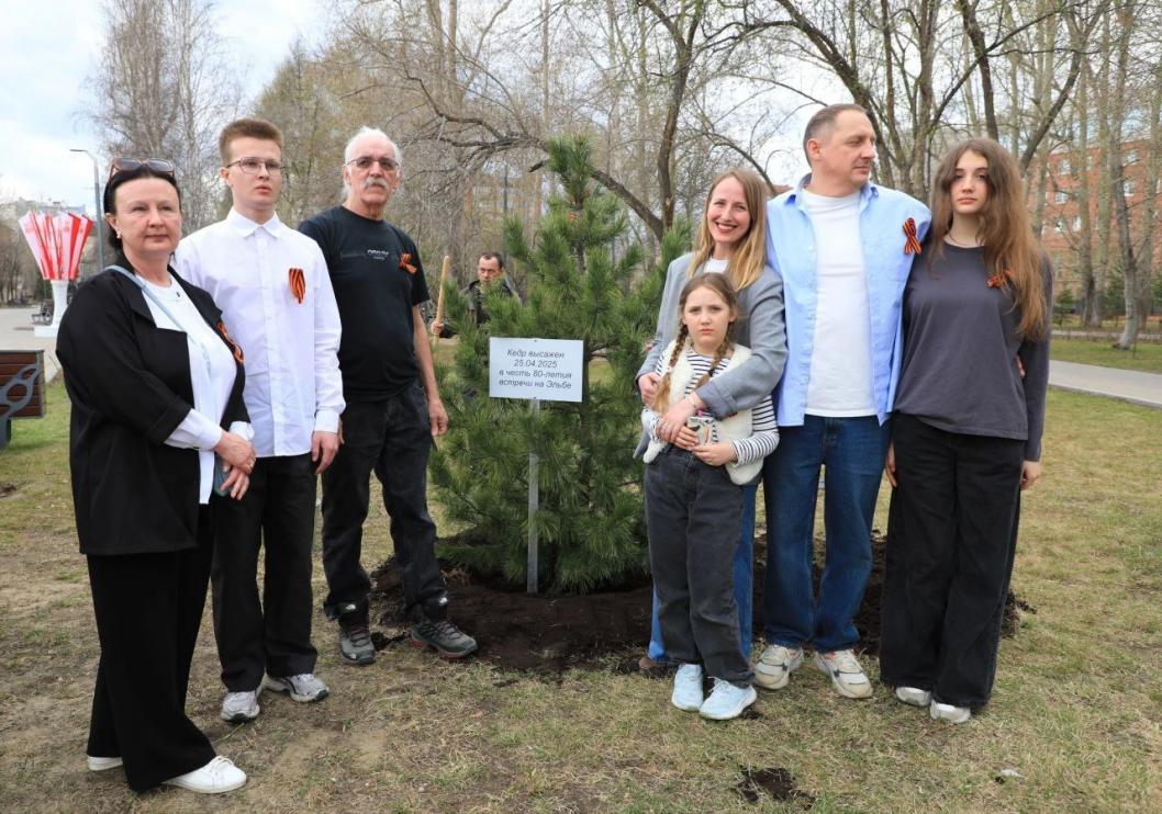 В честь 80-летия встречи советских войск с союзниками на Эльбе тюменцы высадили кедр в сквере Якова Неумоева. Об этом сообщил информационный центр правительства Тюменской области.