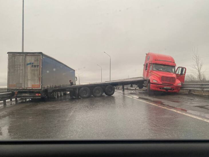 В Тюмени в результате ДТП большегруз перегородил дорогу