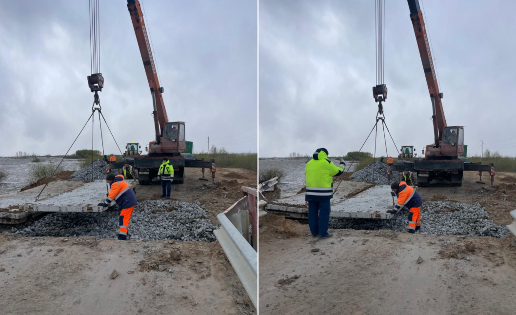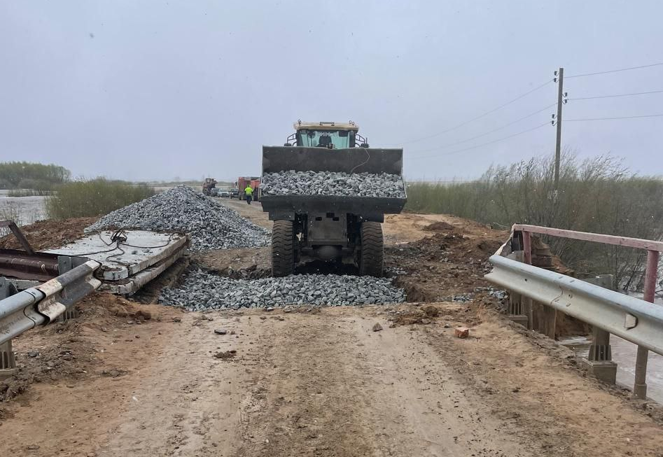 В Казанском районе круглосуточно укрепляют мост из-за паводка