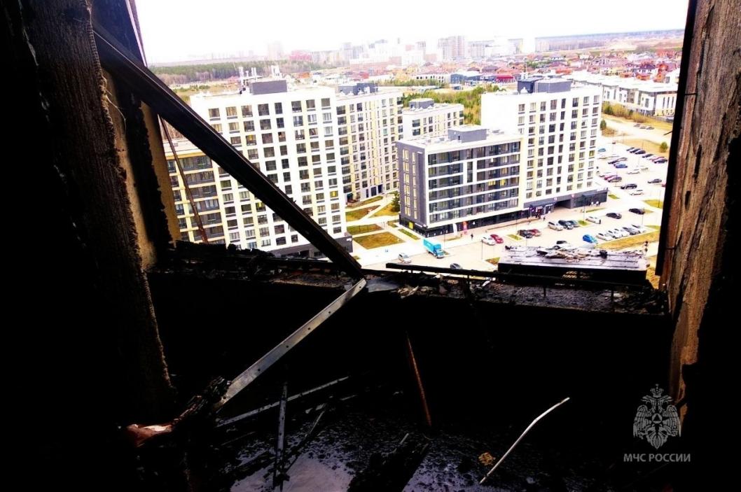 В Тюмени 20 огнеборцев с помощью семи спецмашин потушили пожар в квартире на 16-м этаже многоэтажного дома №7 по улице Сергея Джанбровского в Тюменском районе (район деревни Дударева).
