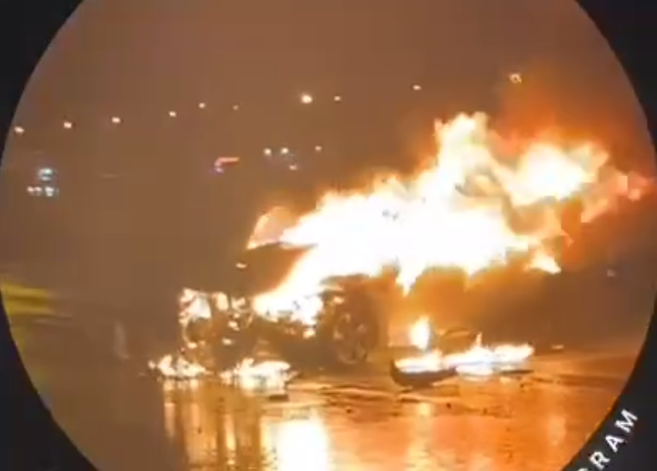 В Тюмени загорелся автомобиль в ходе ДТП в Преображенском