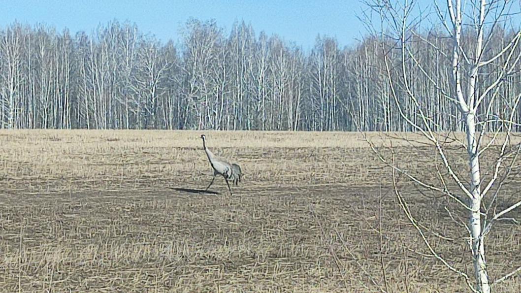 В апреле в Тюменскую область прилетают серые журавли. Они выбирают здесь места гнездования. Величавых птиц заметили, в частности, в Голышмановском районе.
