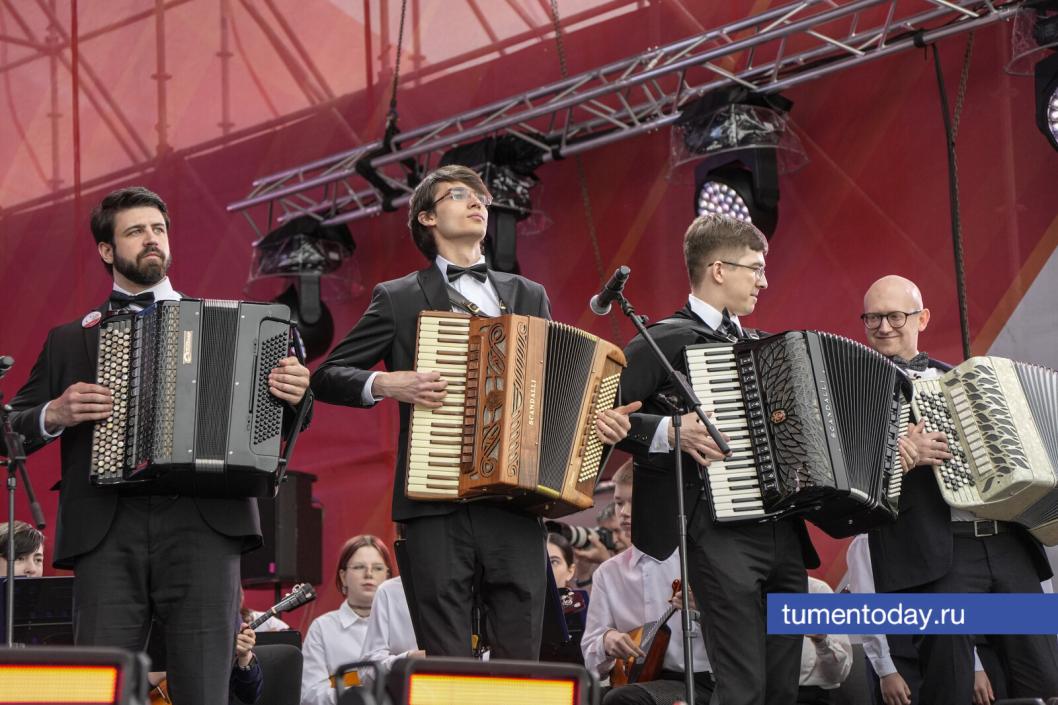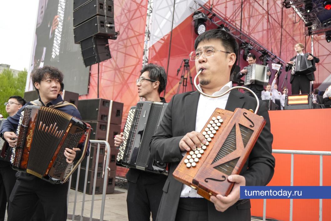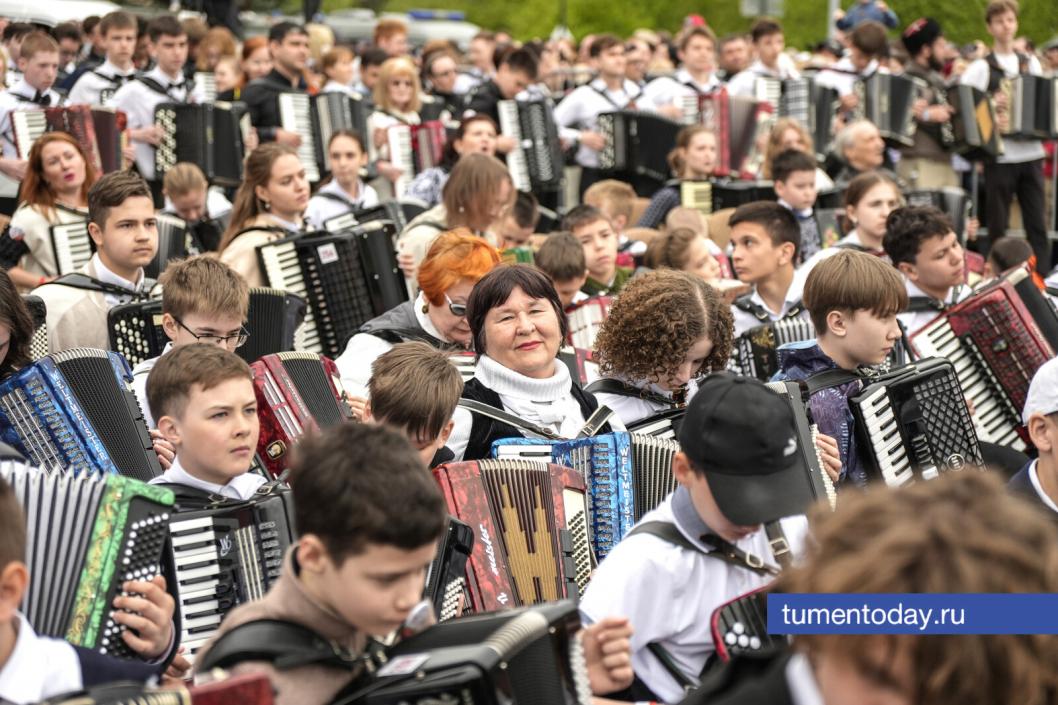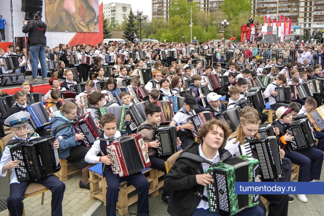 На площади 400-летия Тюмени звучит музыка, от которой ком подступает к горлу, а сердце бьётся в ритме марша. Патриотическая акция «Гимн Победы» собрала уникальный оркестр: 400 баянистов, аккордеонистов и гармонистов из разных уголков России и мира, в том числе более ста тюменских исполнителей. Сводный оркестр под руководством дирижера Василия Химея играет три композиции «День Победы», «Прощание славянки» и «Катюша».