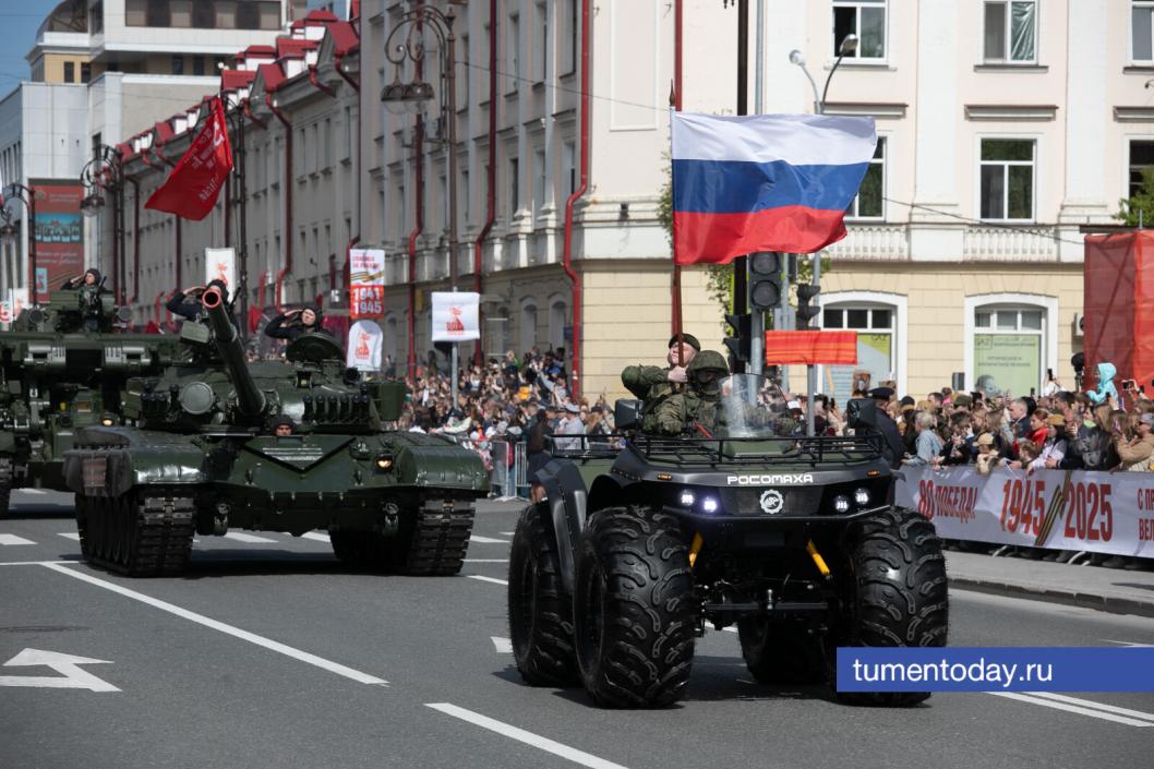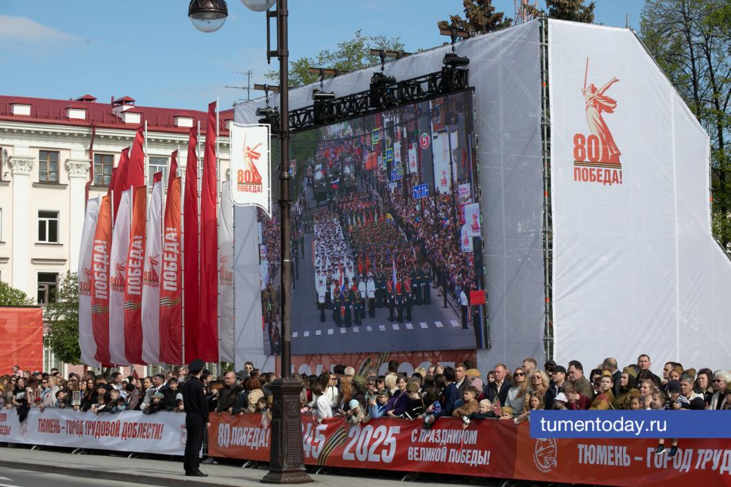 В Тюмени 9 Мая 2025 года состоялся торжественный парад, посвященный 80-летию со Дня Победы в Великой Отечественной войне. Военная техника и участники акции «Бессмертный полк» прошли по главным улицам города. Среди участников – курсанты ТВВИКУ и Тюменского президентского училища, представители конноспортивных клубов, коллективы местных предприятий, общественные объединения, ветераны, семьи с детьми.