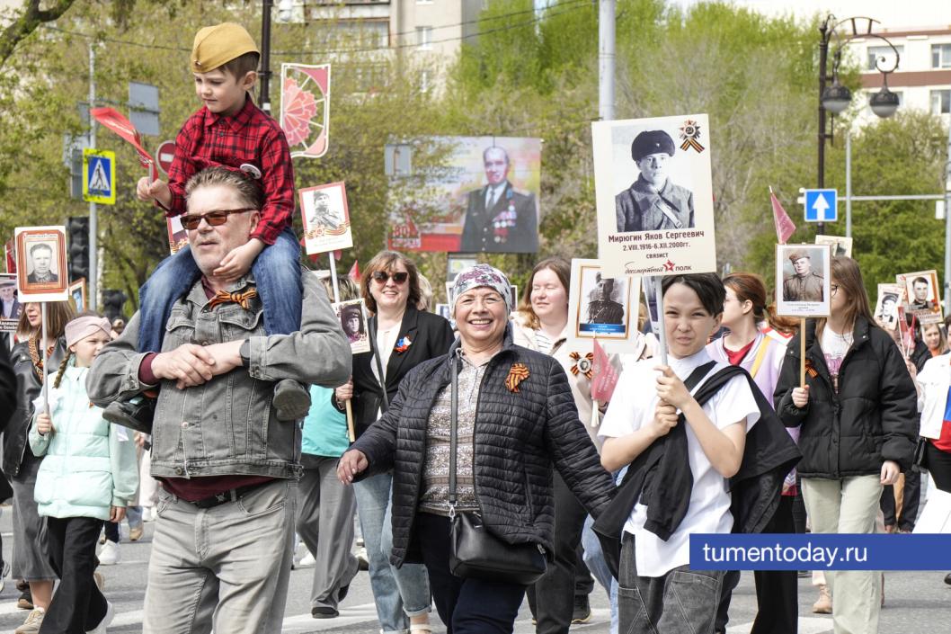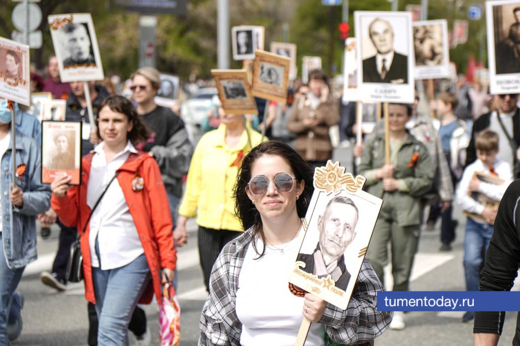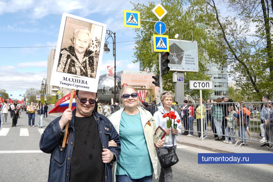 Вместе с парадным расчетами по улице Республики проходит целый полк тех, кого уже нет с нами. Тюменцы с гордостью несут портреты своих прадедов, бабушек и дедушек. С фотографий герои смотрят на своих потомков с улыбкой и благодарностью: семьи бережно хранят память о своих предках. Как сообщил глава региона Александр Моор, в этом году в «Бессмертном полку» прошли более 350 тысяч человек. Из них в Тюмени – 125 тысяч.