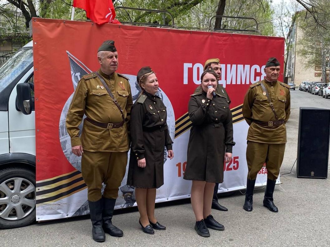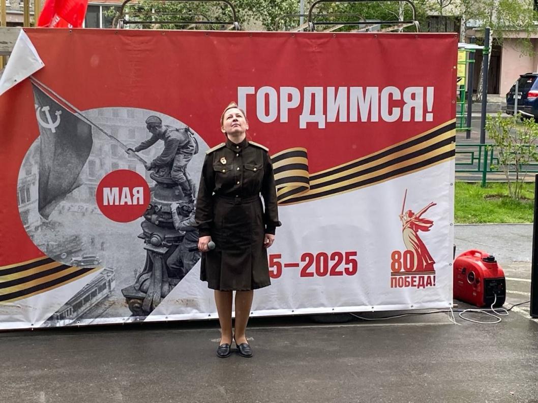 Фронтовые бригады Дома культуры «Поиск» также исполнили знакомые всем патриотичные песни для ветеранов трудового фронта. Они поблагодарили всех, кто приближал Победу в Великой Отечественной войне.