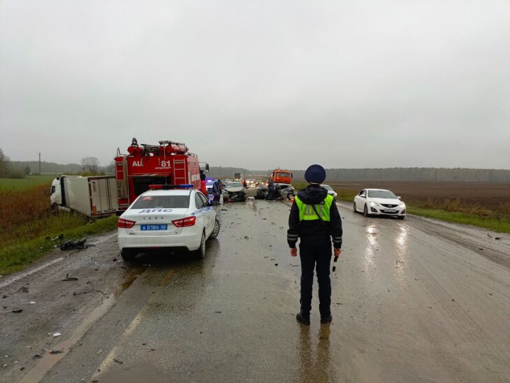 По предварительной информации Госавтоинспекции Свердловской области, на трассе столкнулись Ford, Volvo Truck и Lada Vesta. Два человека, находившиеся в автомобиле Ford, скончались на месте происшествия от полученных травм.