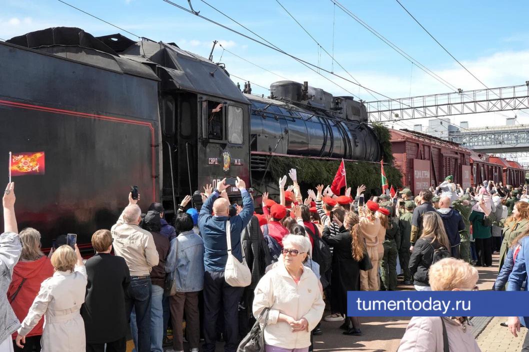 Громкий гудок машиниста, толпа людей и звуки оркестра – так Тюмень встретила эшелон Победы. 1 мая поезд начал свое движение по Свердловской железной дороге и на данный момент прошел почти половину пути – полторы тысячи километров.