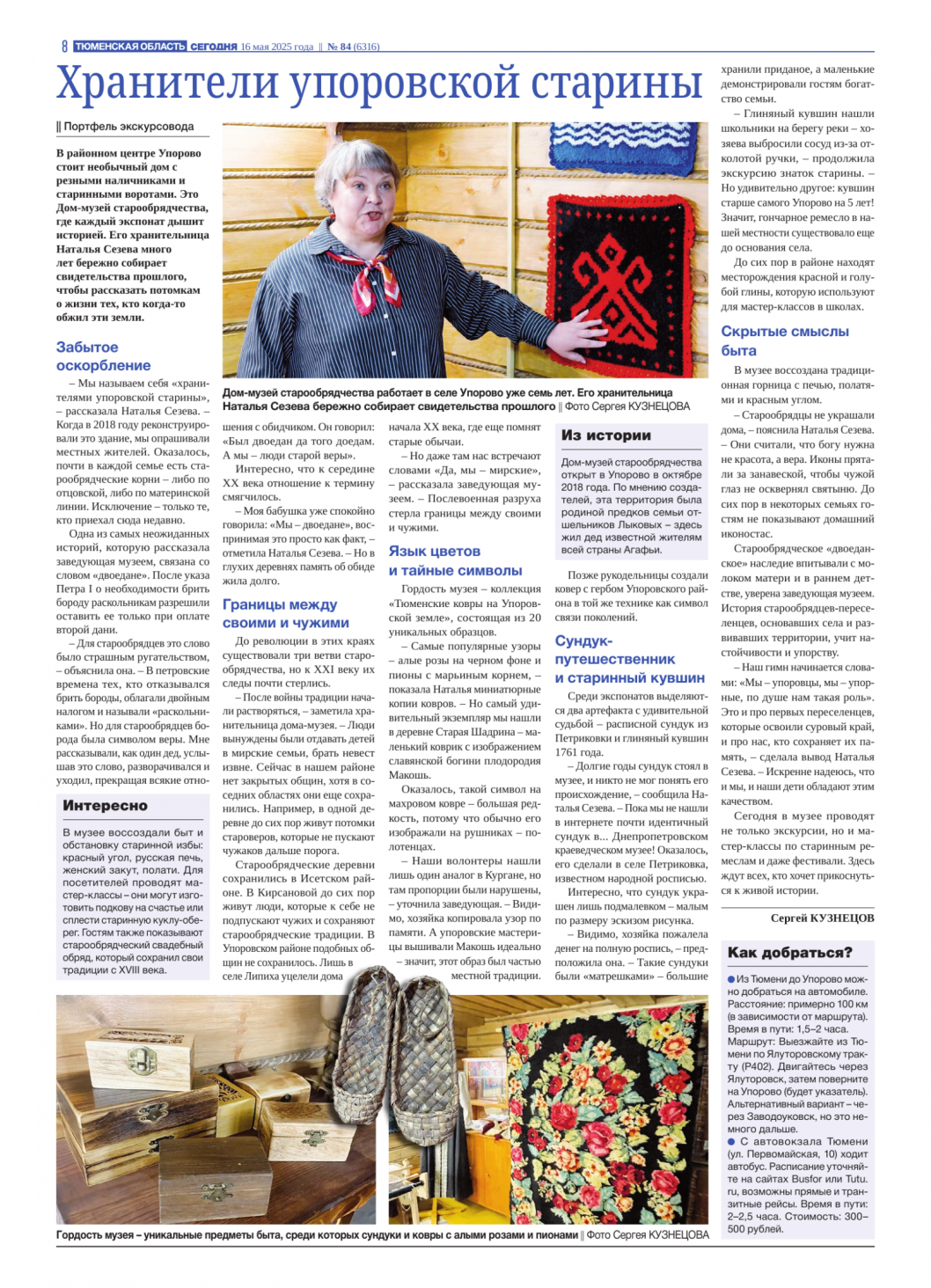 В районном центре Упорово стоит необычный дом с резными наличниками и старинными воротами. Это Дом-музей старообрядчества, где каждый экспонат дышит историей. Его хранительница Наталья Сезева много лет бережно собирает свидетельства прошлого, чтобы рассказать потомкам о жизни тех, кто когда-то обжил эти земли.