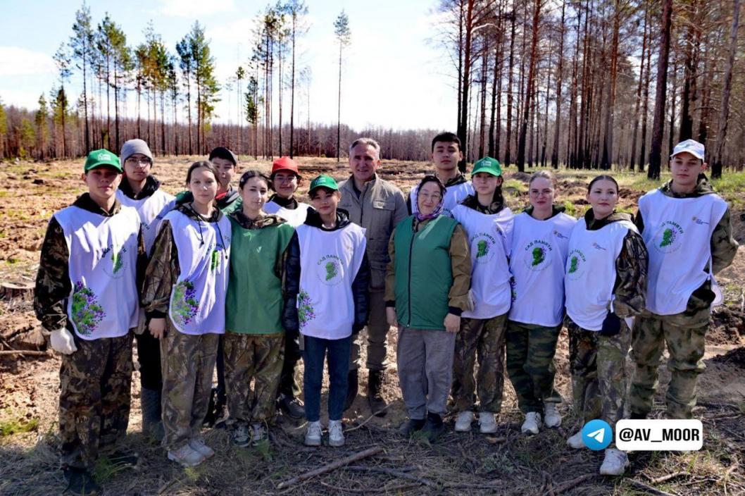 Он напомнил, что в 2022 году территория у деревни Якуши выгорела, были уничтожены десятки деревьев. И сегодняшняя акция направлена на восстановление их. На 11 гектарах участники акции, среди которых были ребята из школьного лесничества «Лесные Робинзоны», высадили порядка 50 тысяч сеянцев сосны обыкновенной.