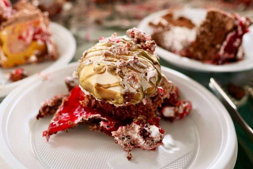 Для приготовления торта-гиганта потребовалось 4500 яиц, 90 кг муки, 104 кг сахара, 17 кг какао-порошка и 200 кг крема.