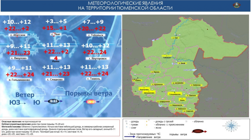 В Тюменской области 20 мая ожидается неблагоприятная погода с грозами и сильными порывами ветра до 15-20 метров в секунду. Предупреждение дали в областном управлении МЧС России.