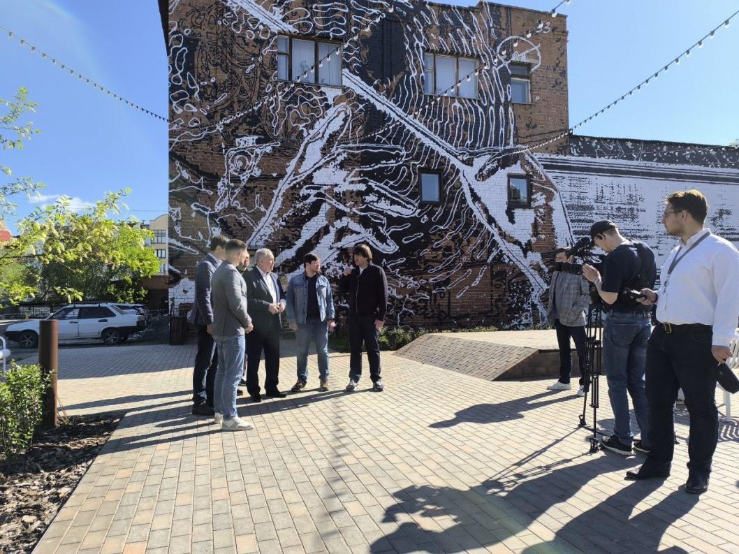 А на здании рядом в виде граффити отразят будни швейной фабрики, которая там была в довоенные годы.