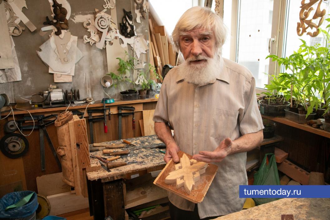 – Началось всё с того, что я начал собирать резные детали наличников с разрушающихся старинных домов. В промежутках между полётами я гулял по улочкам Тюмени и любовался прекрасной деревянной резьбой. А в те годы домов с резным декором было очень много. И однажды, когда я как-то приехал домой к родителям, старший брат - скульптор подарил мне резцы по дереву. Я их в сумку положил, приехал в Тюмень, и забыл про них. А потом вдруг вспомнил о них и начал вырезать друзьям в подарок копии африканских масок и небольшие скульптуры. А когда подобрал очередную упавшую резную деталь тюменского наличника, вдруг захотел сделать ее копию. С этого всё и началось. Я еще летал тогда. Это было пятьдесят лет назад. Пятьдесят.