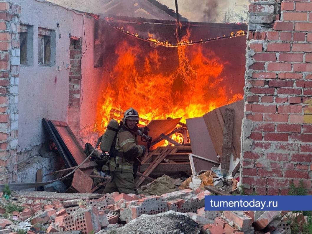 Возгорание тушат два экипажа МЧС России по Тюменской области. Приехала машина скорой помощи. Вокруг полыхающего здания собралось много людей, которые снимают происходящее на смартфоны.