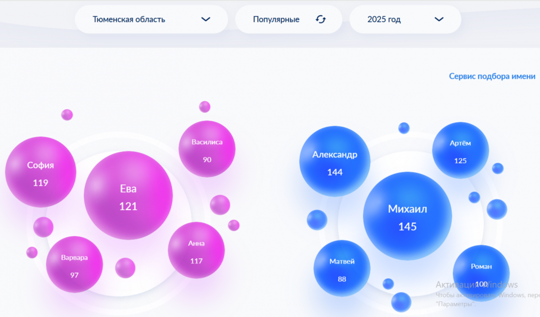 Среди популярных имен в регионе остаются Ева, Анна и София, а также Михаил, Александр и Артем.