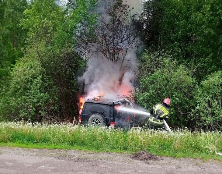 Специалисты этой службы отдельного поста №130 села Тюнёво прибыли на место аварии, где после столкновения полыхал УАЗ, съехавший в кювет. Машину оперативно потушили.
