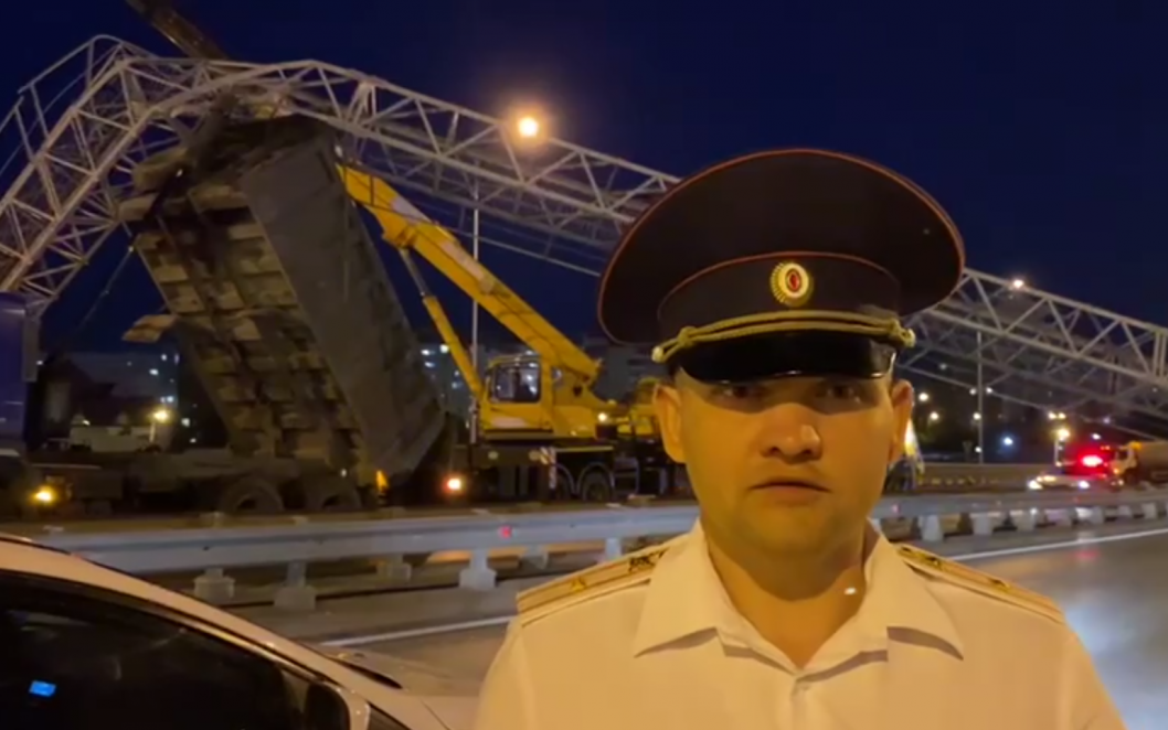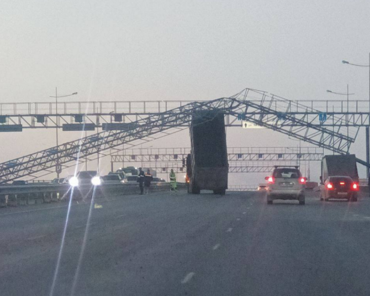 Обновлено в 00:05. Как сообщили в Главном управлении строительства, задета рамная опора, пострадавших нет. Для устранения последствий ДТП направлена строительная техника, в том числе кран. Дорожники приступили к разбору поврежденной конструкции.