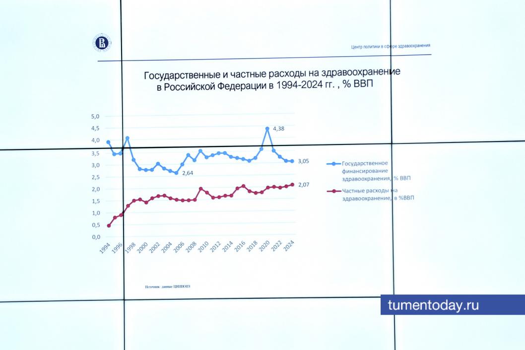 Как сообщил Сергей Шишкин, в настоящее время российское здравоохранение находится в ситуации системного финансового и кадрового дисбаланса. При сравнительно невысокой доле расходов на здравоохранение в ВВП (около 3,5%) Россия сохраняет одну из самых широких систем государственных гарантий бесплатной помощи.